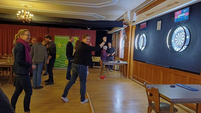 Aktuelles 06.02.2026 Es lebe der Sport – MdB Tina Winklmann wirbt für bessere Förderung von Breiten- und Spitzensport Pettendorf, 06.02.2026. Es lebe der Sport- unter diesem Motto luden BÜNDNIS 90/DIE GRÜNEN zum Dartturnier im Pettendorfer Mayerwirt. In lockerer Atmosphäre und mit sportlicher Bewegung öffnete die sportpolitische Sprecherin der GRÜNEN Bundestagsfraktion den Austausch zu anstehenden kommunalpolitischen Themen. Wenn Tina Winklmann Wahlkampf macht, dann immer in Turnschuhen. Die leidenschaftliche Sportpolitikerin aus Schwandorf sitzt im Bundestagsausschuss für Sportpolitik und warb engagiert für eine bessere Förderung von Breiten- und Spitzensport. Denn In Deutschland treiben viele Millionen Menschen Sport – im Verein oder in freien Gruppen. „Im Sport sind alle Menschen gleich “, betonte Winklmann. “Sport verbindet alle Menschen unabhängig von ihrer Herkunft, ihrem Geschlecht, ihren sozialen und finanziellen Möglichkeiten, ob mit oder ohne Behinderung. Dies zeigt sich doch sehr eindrucksvoll hier beim „Kneipensport Dart“ in Pettendorf.“ Treffsicher: MdB Tina Winkelmann (3. v.r.) beim Dartturnier der GRÜNEN Pettendorf Tatsächlich steht die noch junge Dartabteilung des TSV Adlersberg für Inklusion, wie Andreas Schmeiduch, Trainer der erfolgreichen Dart-Mannschaft ausführte und die Regeln und Kniffe des Dartsport im Mayerwirt-Saal anschaulich erläuterte. Schnell wurde allen klar: Dartspielen auf hohem Niveau braucht viel Übung, körperliche Fitness und vor allem Konzentration. „Unsere Vereine bieten schon ein wunderbares Spektrum an unterschiedlichsten Sportarten. Deshalb brauchen wir in unseren Dörfern gute und wettkampfgerechte Sportstätten mit Platz für ein begeistertes Publikum“, betonte Gemeinderätin Gaby Vetter-Löffert. Vor dem Hintergrund der olympischen Winterspiele in Italien war man sich einig, dass wir auch den Spitzensport als Vorbild und Treiber für den Breitensport mehr Wertschätzung geben sollten. „Wir haben einen gewaltigen Sanierungsstau für unsere Sportstätten und die Förderprogramme sind vielfach überzeichnet,“ so Winkelmann. „Deshalb sind wir in Bayern nur erfolgreich, wenn wir über die Parteigrenzen hinweg zusammenarbeiten.“ Dafür werden sich unser Bürgermeisterkandidat Johann Bruckner und unsere Kandidat:innen für die Gemeinderats- und Kreistagswahl entschlossen einsetzen. Bild Gaby Vetter-Löffert / Text Andy Löffert 25.01.2026 Handy, Laptop, Internet – BÜNDNIS 90/DIE GRÜNEN sehen Unterstützungsbedarf für Senior:innen Laptop, Handy, Internet – GRÜNE Hilfe für Senior:innen im Dorfhaus KneitingBild Gaby Vetter-Löffert / Text Andy Löffert Kneiting, 25.01.2026. Die Digitalisierung verändert unsere Gesellschaft fundamental. Gerne wird sie als Allheilmittel für den Abbau von bürokratischen Prozessen angepriesen. Ein sicherer Umgang mit digitalen Angeboten wird deshalb immer wichtiger. Bereits Kinder lernen in der Schule Medienkompetenz, die Bedeutung von Datenschutz und das Erkennen seriöser Inhalte auf dem Handy. Andererseits fühlen sich viele – vor allem Ältere – von der zunehmenden Digitalisierung überfordert, abgehängt und in der Folge isoliert. Erwartungsgemäß folgten die Pettendorfer:innen der Einladung von BÜNDNIS 90/DIE GRÜNEN ins Dorfhaus Kneiting mit einem Strauß voller Fragen. Bei Kaffee und Kuchen hatten die GRÜNEN, alle Hände voll zu tun. Von Fragen zum Aufspielen neuer Betriebssysteme auf den Computer, über das Einrichten von E-Mail-Postfächern auf dem Handy bis hin zu komplexen Fragen bei Installationen in Linux konnten die Gemeinderatskandidaten Johann Bruckner, Thomas Proll und Peter Greiner Lösungsvorschläge aufzeigen. „Unser Angebot zeigt, wie groß der Bedarf an Hilfsangeboten für Senior:innen beim Umgang mit digitalen Medien ist“, resümierte Bürgermeisterkandidat Johann Bruckner. „Wir wollen die Digitalisierung auch in unserer Gemeindeverwaltung weiter ausbauen, aber als Angebot, für diejenigen, die das nutzen wollen. Daneben sollte es auch ein Recht auf analoges Leben geben. Wer möchte, sollte noch persönlich auf dem Amt einen Personalausweis beantragen können, oder eine Fahrkarte im Bus mit Bargeld bezahlen dürfen.“ Auch Christiane Proll, Listenführerin der GRÜNEN Gemeinderatsliste für Pettendorf, sah Bedarf für mehr Unterstützung von Senior:innen: „Die Digitalisierung ist für mich nur ein Beispiel dafür, warum wir in einer älter werdenden Gesellschaft das wundervolle ehrenamtliche Engagement in unserer Gemeinde durch eine hauptamtliche Seniorenpflege ergänzen sollten.“ 15.01.2025 Podiumsdiskussion von BÜNDNIS 90/DIE GRÜNEN stößt in Pettendorf auf reges InteresseWissenschaft und Wirtschaft zeigen Wege zur Energiewende im voll besetzten Mayerwirt auf. Am Donnerstag, dem 15.01.2026 fand im Bürgersaal des Mayerwirt in Pettendorf eine Wahlveranstaltung von BÜNDNIS 90/DIE GRÜNEN statt: Im Vordergrund die Themen (E-) Mobilität, Heizen und Energiespeichern, bei denen auch die Bürger:innen zu Wort kamen. Schon zehn Minuten vor dem Beginn der Veranstaltung war der Saal des Wirtshauses gefüllt. Das große Interesse unterstrich, dass die vom BÜNDNIS 90/DIE GRÜNEN gesetzten Themen von großer Bedeutung für die Bürger:innen von Pettendorf sind. Das Podium war mit Prof. Dr. Michael Sterner (OTH Regensburg), Michael Achhammer (Jura Automobile) und Roland Plodek (SOLAR-PV) hochkarätig besetzt. Die unterschiedlichen Perspektiven und Beiträge des Wissenschaftlers und der beiden Pettendorfer Unternehmer wurden unter Einbeziehung des Publikums von Andy Löffert souverän moderiert. Prof. Dr. Sterner belegte eindrücklich, dass die Energiewende hin zu regenerativen Quellen aus wissenschaftlicher Sicht dringend notwendig ist, möchte man ökologische Kipppunkte verhindern. Er wies überzeugend darauf hin, dass die technischen Möglichkeiten dafür bereits vorhanden sind. Auch lohnt es sich finanziell von fossilen Energie